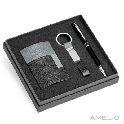 Conjunto com porta-cartões e chaveiro